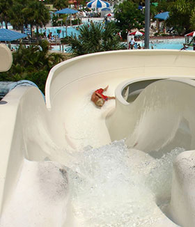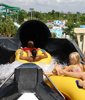 The Fun-L-Tunnel is a slide on the wild side. This narrow darkened tunnel drops 30 feet without a tube. It’s just you and the water for 200 feet.